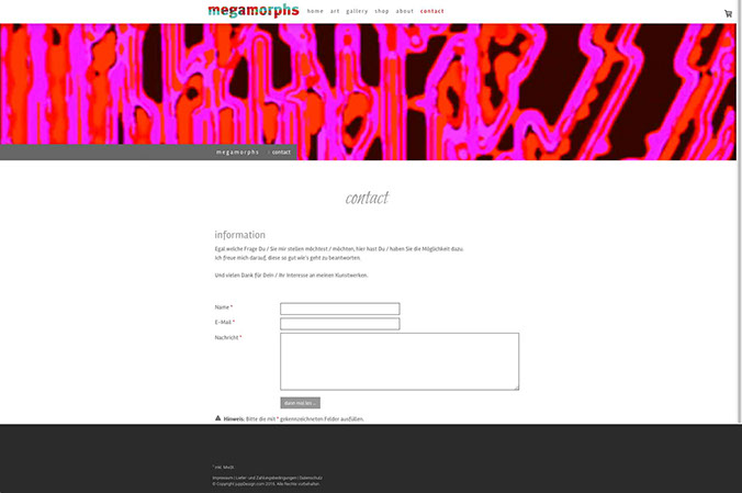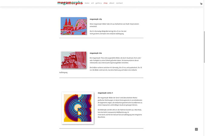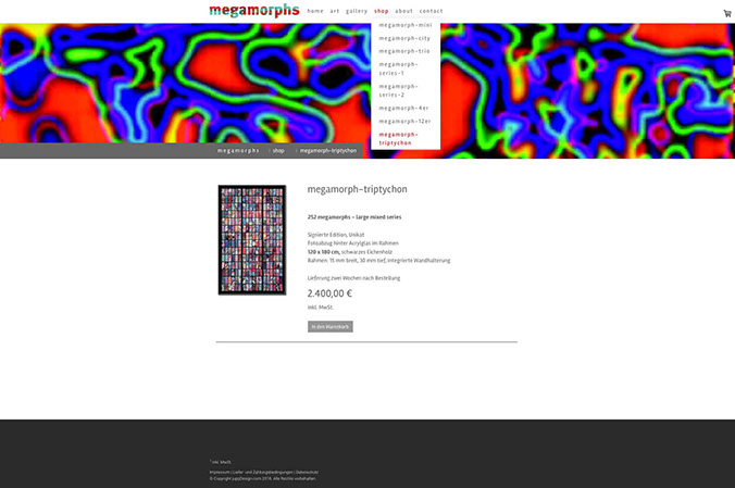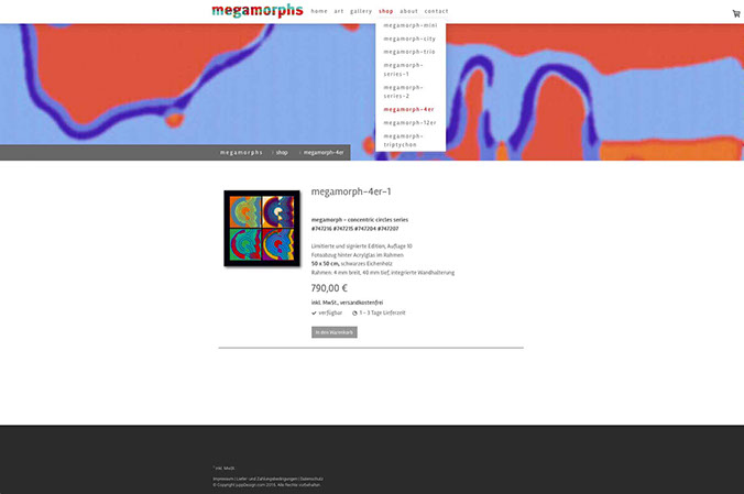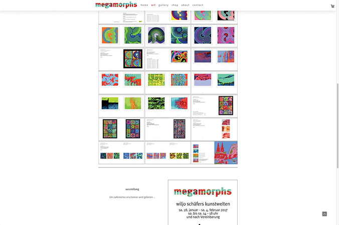 Webseite mit Shop Porträt des Künstlers Wiljo Schäfers, Mettmann, und Online-Plattform