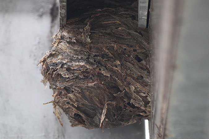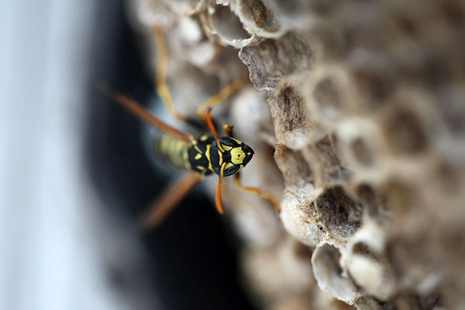 Porträt: Schädlingsbekämpfern im Einsatz Wespenbekämpfung auf einem Gelände für