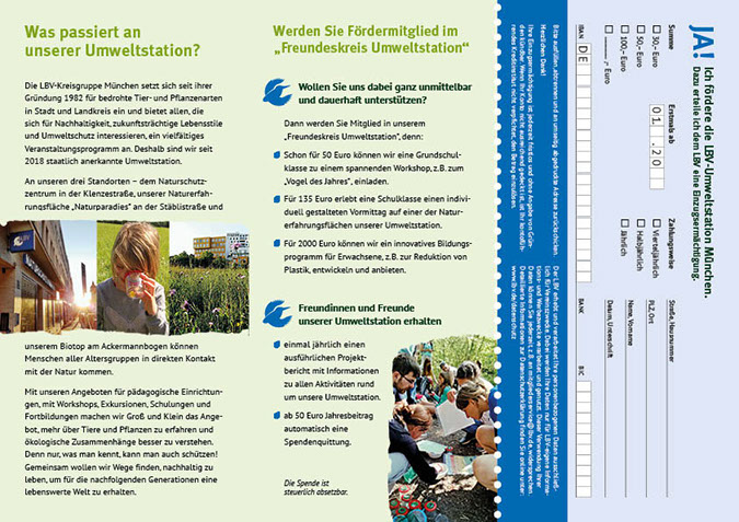 Flyer 2020 Gestaltung eines Faltblatts für den Freundeskreis der LBV-Umweltstation.