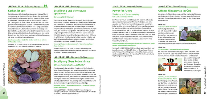 Programmheft Gestaltung der Broschüre mit Ausblick auf alle Projekte, Seminare